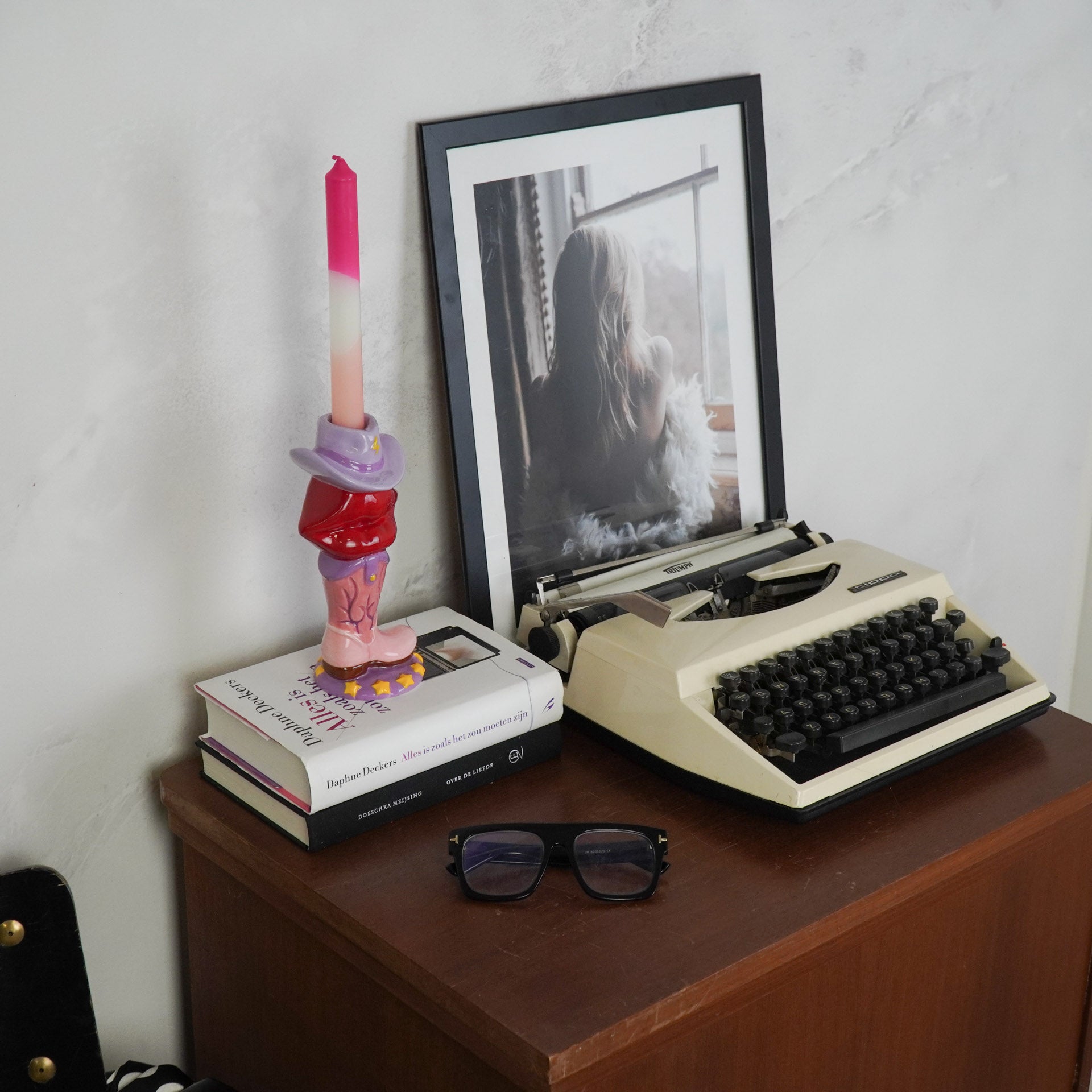 STATEMENT PIECE ALERT! This ceramic candle holder is anything but standard: with a bold stack of a cowboy boot, red lip, and cowboy hat (10x8x20 cm), it instantly adds fun and character to your interior. A true conversation starter, perfect for anyone who dares to play with accessories.