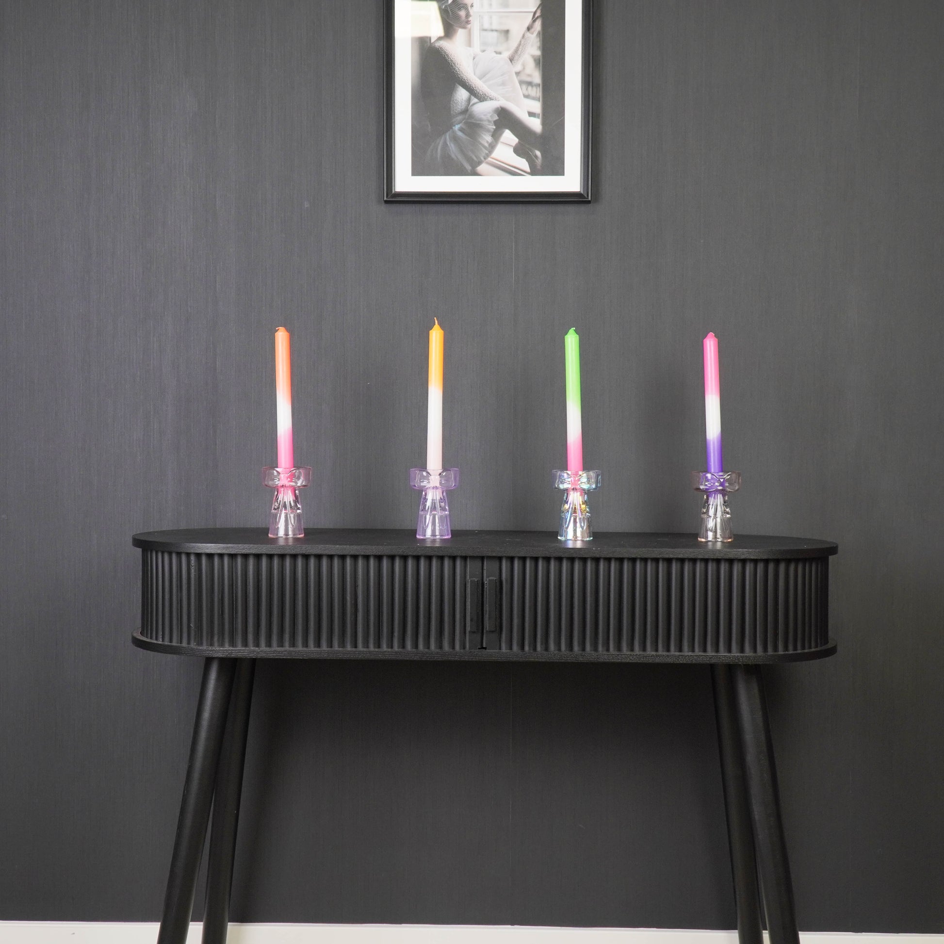 BOW LOVER! Add a playful and elegant touch to your interior with this bow-shaped candle and tealight holder. Made of colored glass, this decorative piece creates a warm and atmospheric light reflection. The charming bow design makes it a true eye-catcher on your table, windowsill, or sideboard.