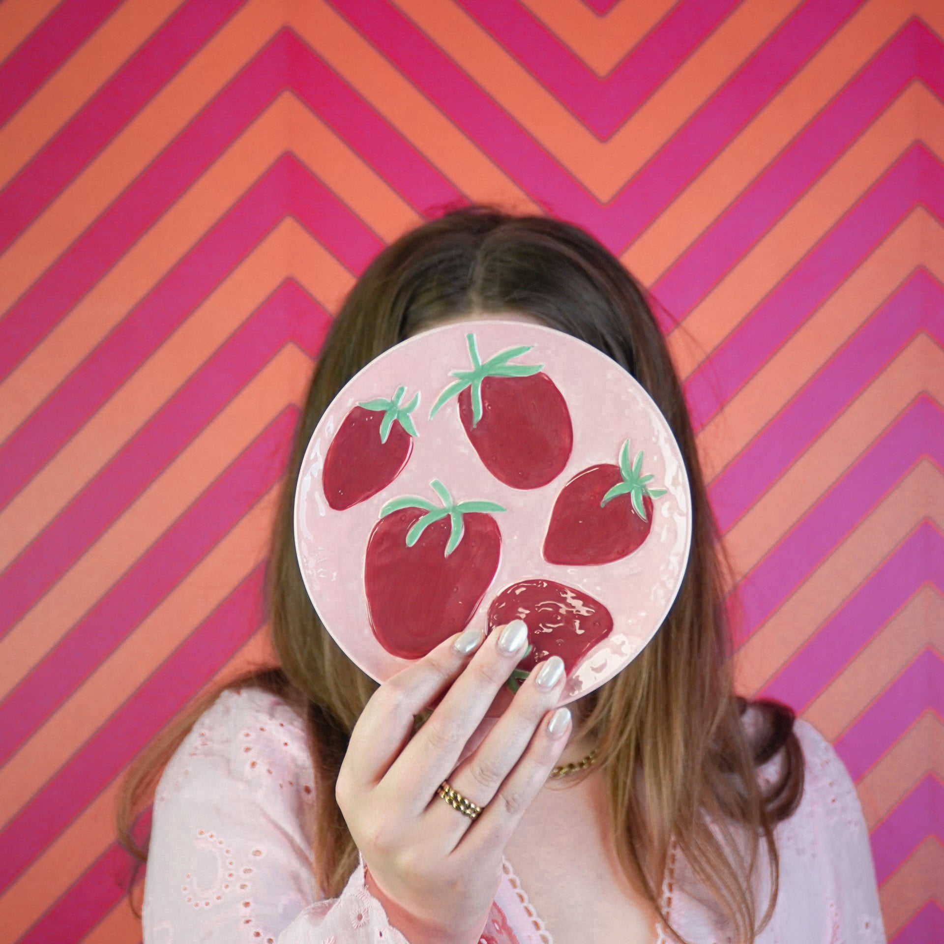 Deco Plate- Strawberries - Pink/ Red- 17,5x17,5x2cm