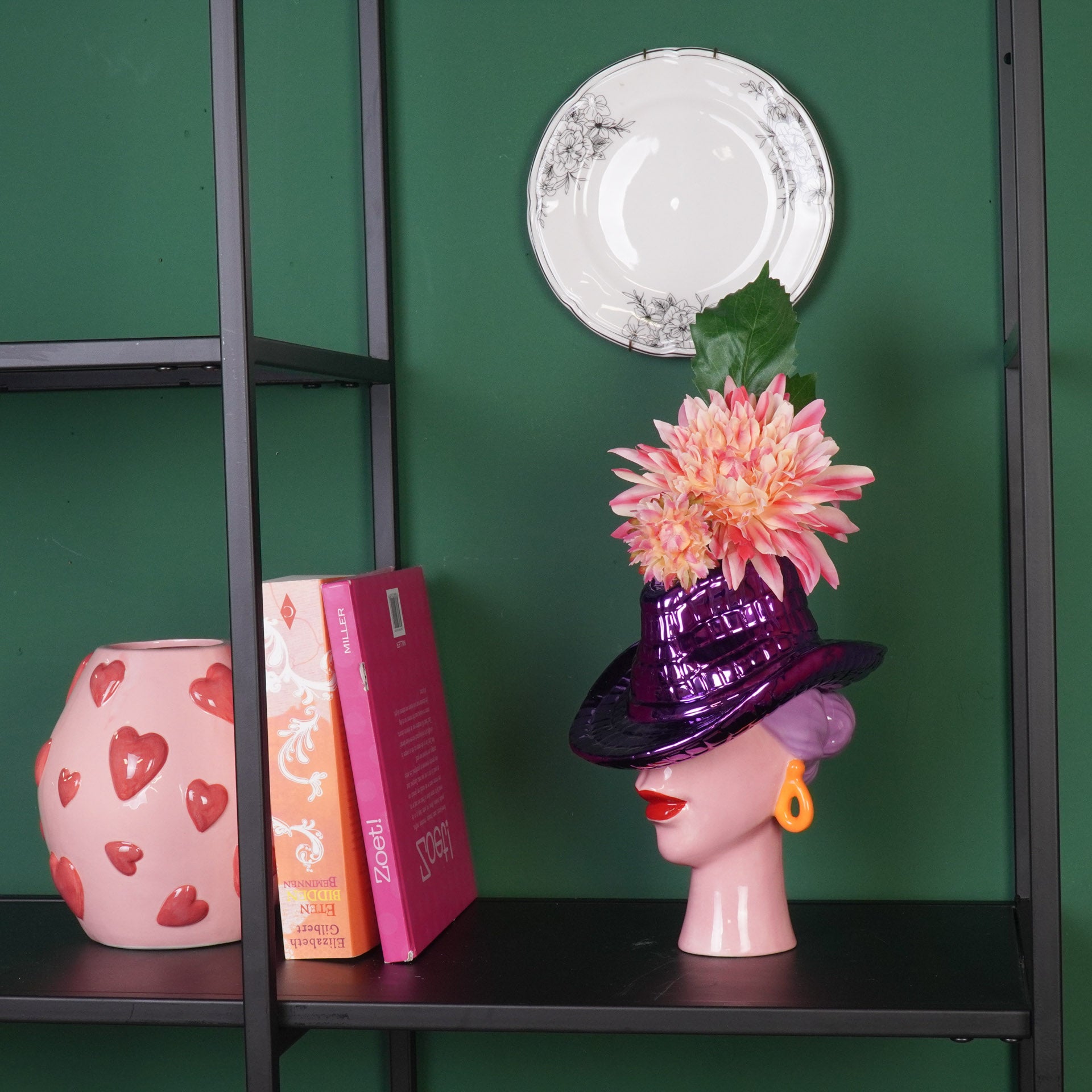LADY WITH THE HAT – A touch of western chic for your interior! This ceramic vase in the shape of a woman with a cowboy hat in lilac and pink (19x16x23.5 cm) is a true eye-catcher. This lady vase combines artistic design with a bold, feminine touch. The subtle lilac shade combined with the sparkling metallic pink makes this vase a stylish statement piece that makes your flowers shine even brighter.