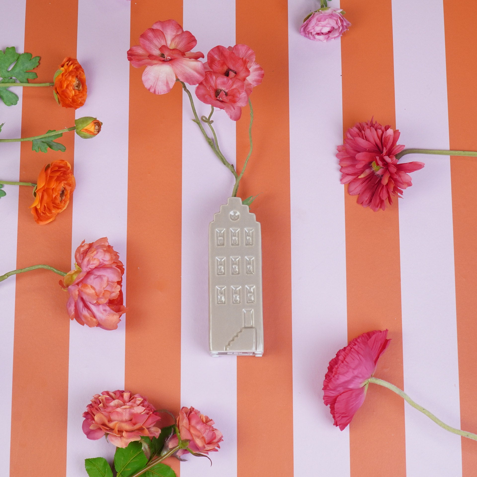 IN THA HOUSE! Bring a piece of Amsterdam into your home with this ceramic vase in the shape of a classic canal house! A mini townhouse just for your flowers. With its charming façade, rich color, and playful details, this house vase is just as photogenic as the real canal houses.