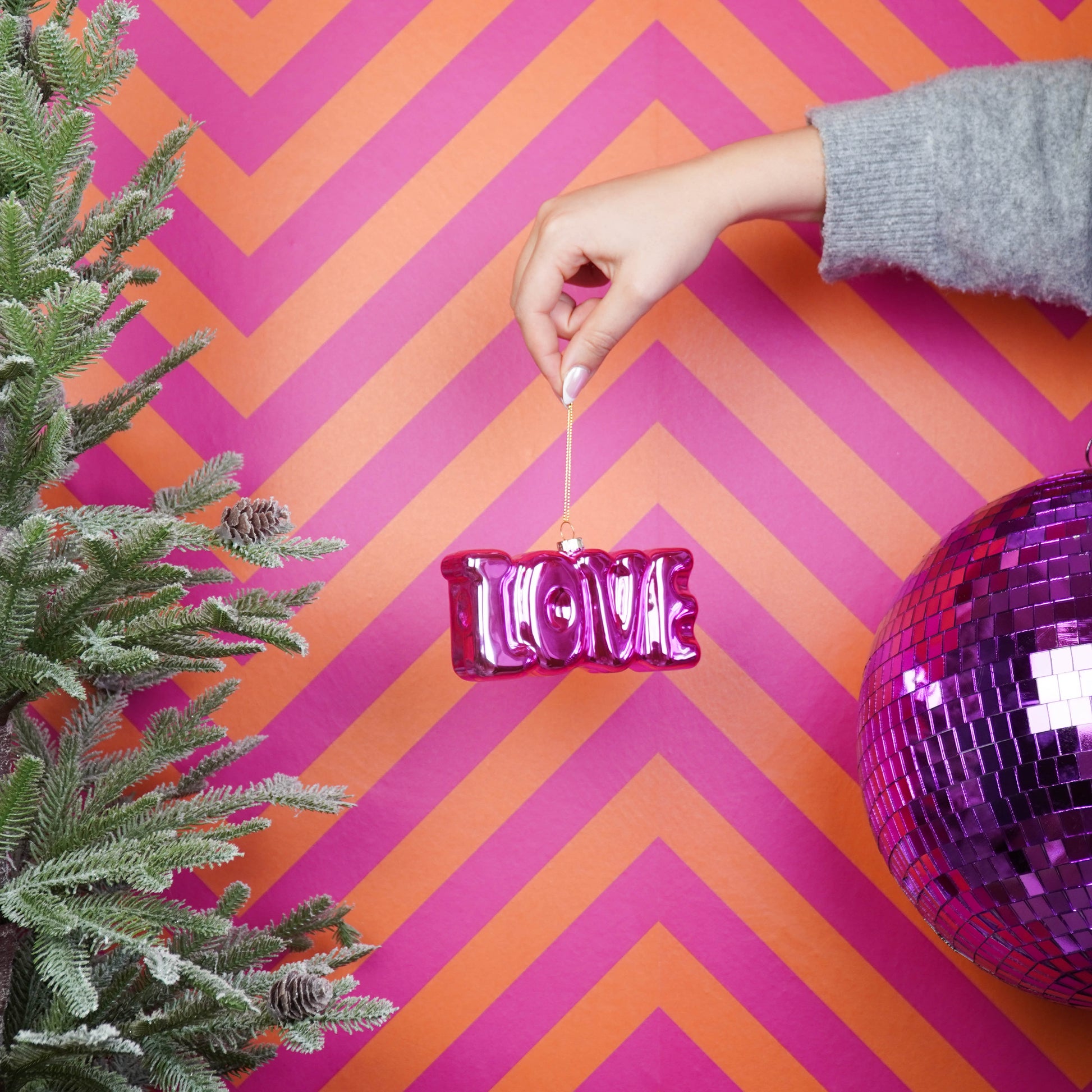 Ornament - Xmas Hanger - Love- Pink - Glass - 4,5x3,5x7,5cm