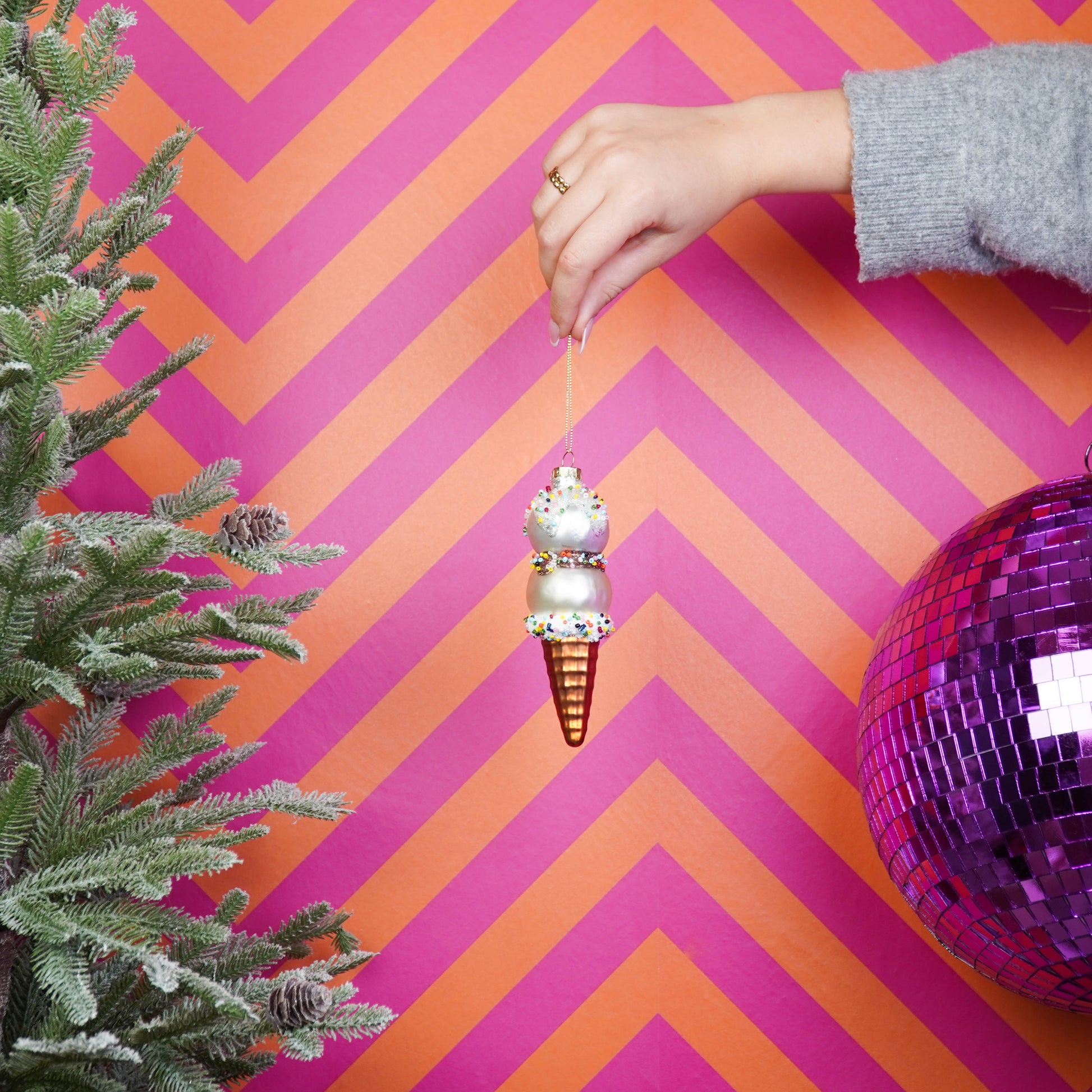 Xmas Hanger - Ice Cream - Glass - Pink/White - 5x14cm