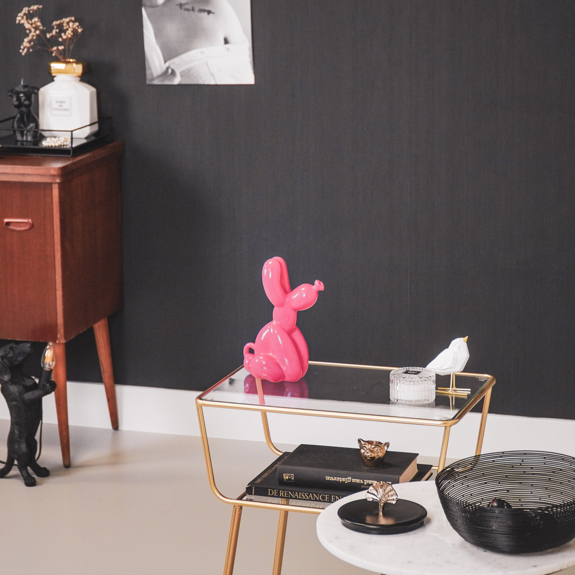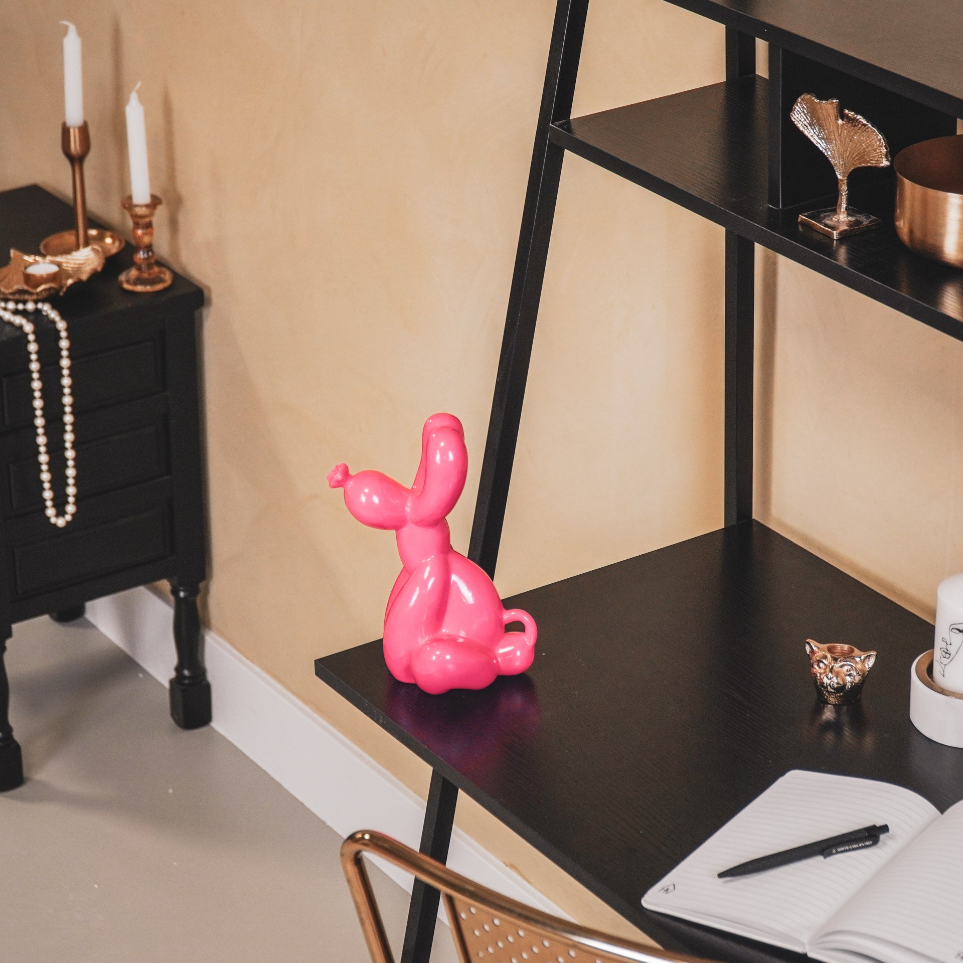 Styling advice: Place the ceramic dog on a pile of books, so it has a spotlight.