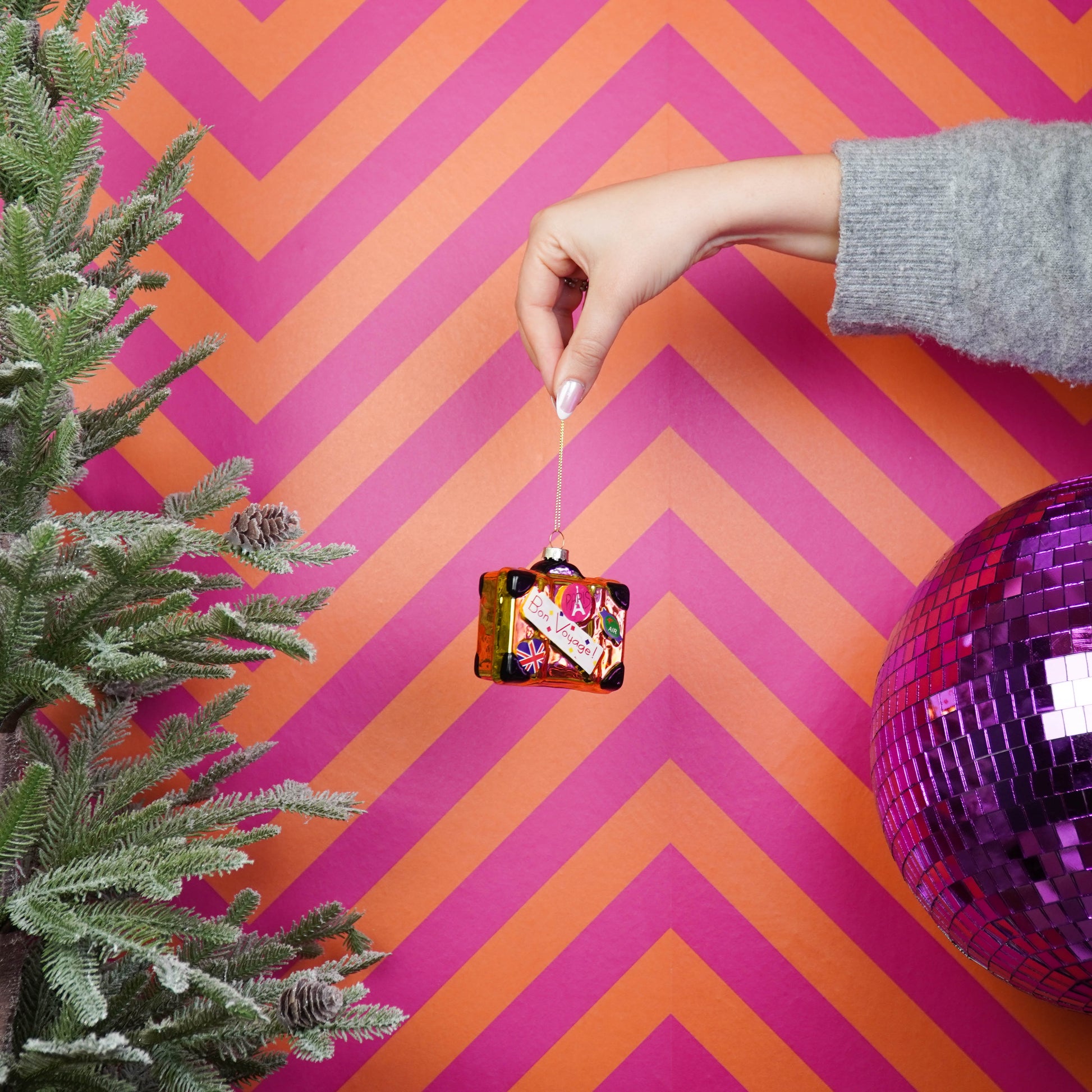 Xmas Hanger - Suitcase - Glass - Gold - 8,5x3,5x8cm