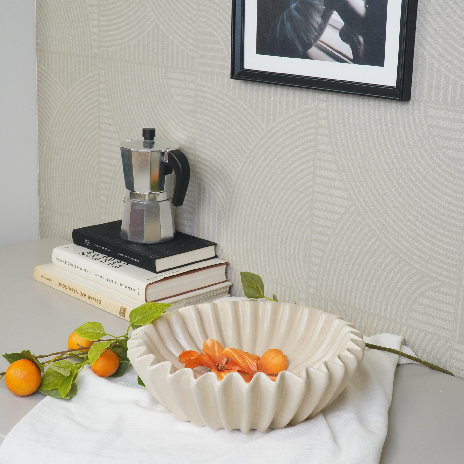 Bowl- Pleated Bowl - Ceramics- Sand- 29,5x29,5x9cm