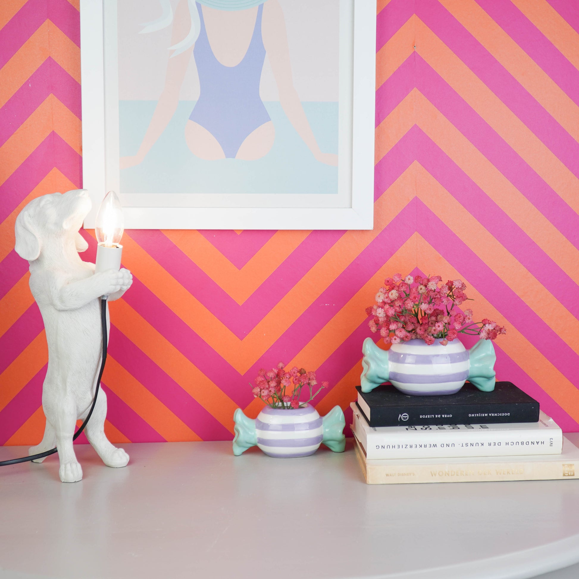 Group several candy pots together for a playful effect, or pair them with neutral accessories to make the colors pop. Also super fun as a small gift or a cheerful detail in the kitchen or a child’s room.