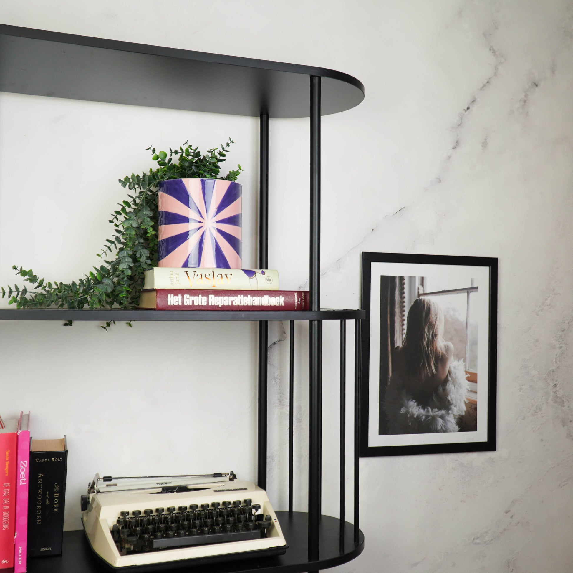 Combineer deze swirl plantenpot met andere potten in verschillende vormen en hoogtes voor een speels geheel. Je kunt er natuurlijk ook iets anders dan planten in zetten, zoals: keukengerei of pennen en viltstiften.