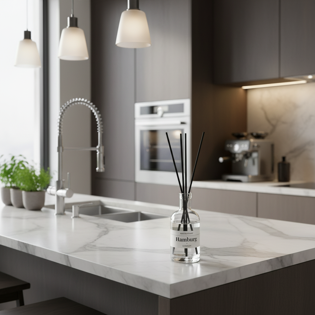 We have tried to capture the Hamburg feeling "'Moin"' in this bottle of reed diffuser. Give it up for Hamburg: "Tor zur Welt".
