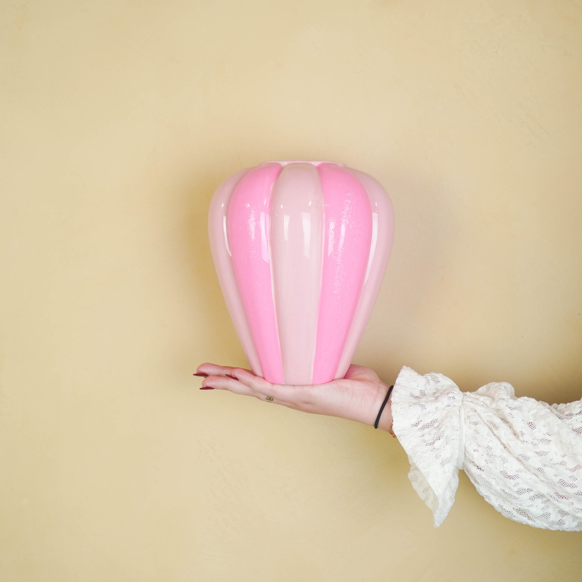 Flower Vase- Swirl Vase-Ceramic- Neon Pink/ Light Pink- 20x20x21,5 cm