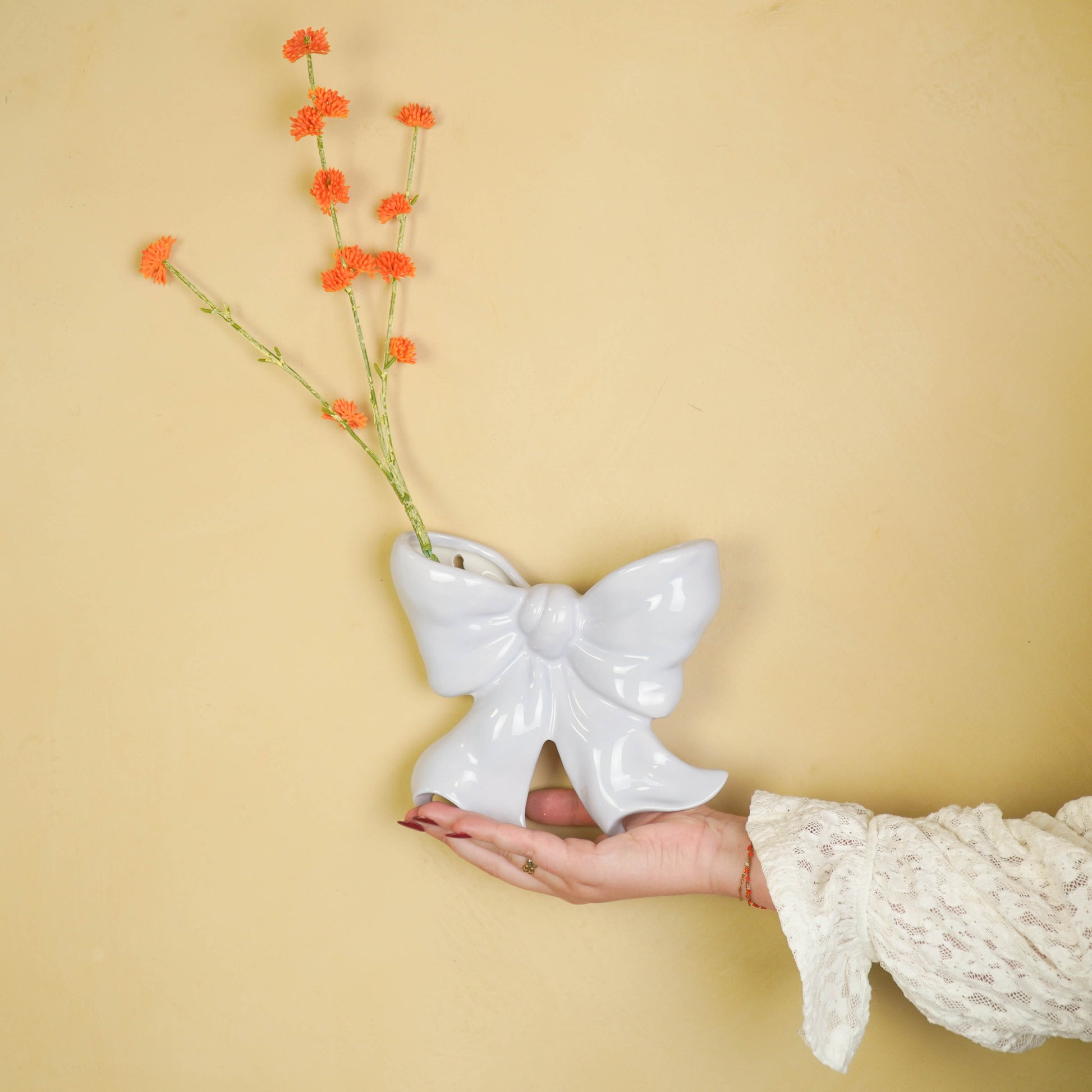 TIE IT UP! A gift for your wall! This ceramic wall vase in the shape of a beautiful bow is the perfect mix of playful and stylish. With its unique bow design and dimensions of 19x18.5x5.5 cm, it’s the ultimate eye-catcher that gives your wall a cheerful twist. Hang it in the living room, kitchen, or hallway and let it steal the spotlight.